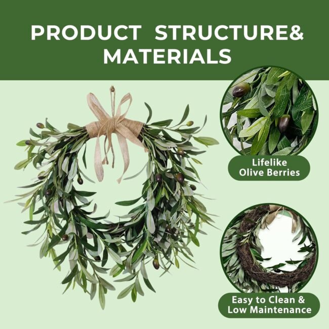 • 【Durable】The material of this front door wreath has been carefully selected and rigorously tested, whether it’s a hot sunny day or a humid rainy day, it is waterproof and UV resistant. It will not fade or age due to environmental factors. Since the outdoor wreath is artificial, its leaves will not fall off and no care is needed. Therefore, it can be reused all year round