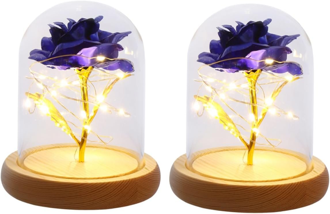 2pcs Glass Cover Rose Flower Decor Artificial Rose Ornament for Home Decor Gold Foil Design for Desktop Decoration and Gifts