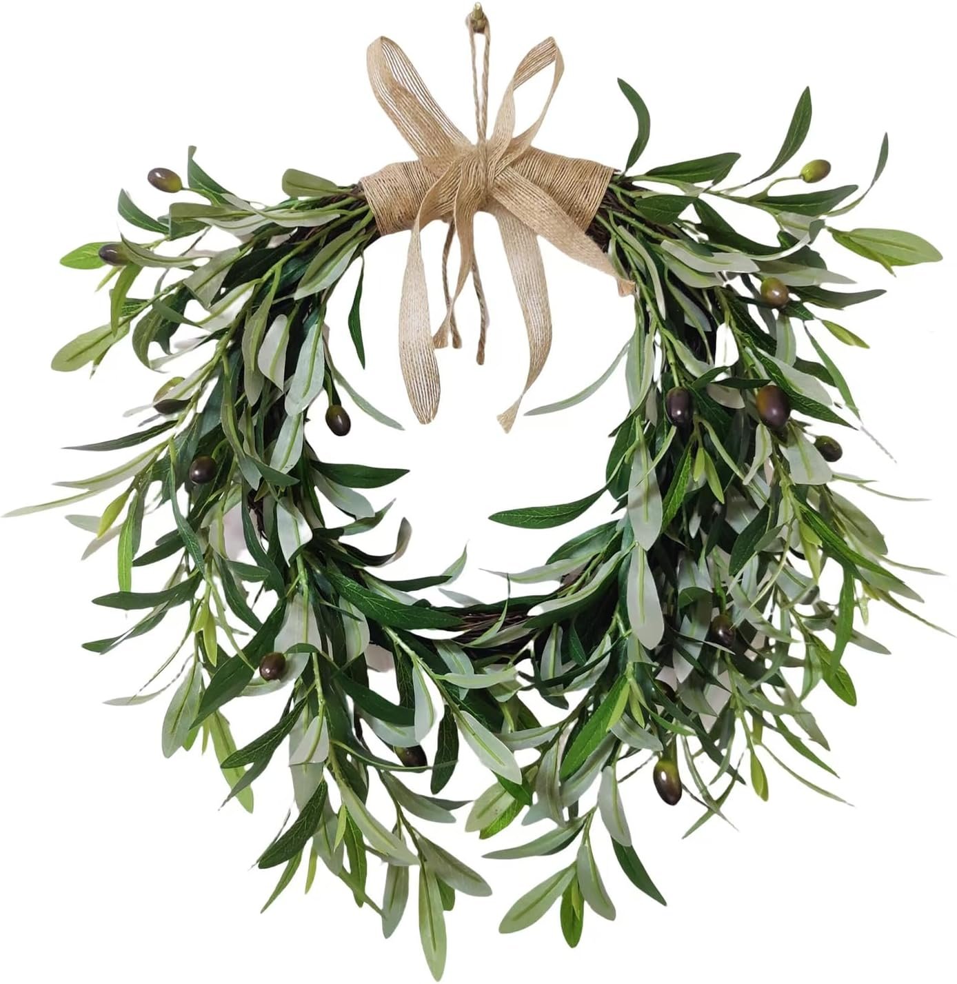 • Lifelike Olive Greenery Look – Featuring faux olive branches with textured leaves and realistic dark green fruits, this wreath brings a natural touch to any space without the need for maintenance.