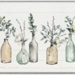 Bottles and Plants Farm Wood Textured, Design by Wall Art, 11 x 14, Multi-Color for Living Room, Grey Framed